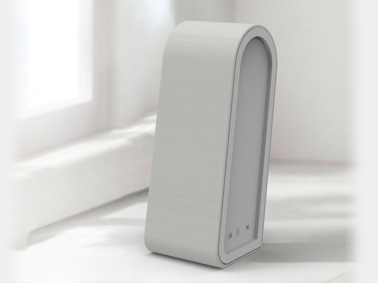Sonique’s design language borrows heavily from towering monuments and elegant arches. The shape is tall, narrow, and features a softly rounded top that feels welcoming yet imposing. The fabric front is recessed, lending the speaker a subtle depth, while the control strip at the bottom remains discreet—no buttons screaming for your attention here.