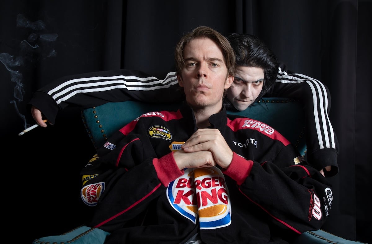 Live, VOWWS are a spectacle wrapped in jet-black clothing. Rizz’s face is often painted in stark white and black, vampiric and striking, while movie footage plays on screens behind them. “We always call ourselves happy, sad,” James says of their music’s emotional range. “There’s a lot of feeling in there that’s not bad. We’re not just depressing.”